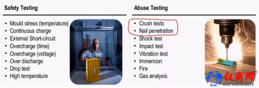 圖1 電池安全和濫用測(cè)試項(xiàng)目