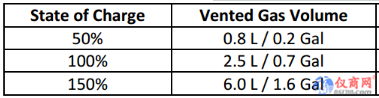 同時(shí)測(cè)量釋放出來(lái)的氣體的含量(表2),從50%SOC到100%SOC,熱失控后釋放出來(lái)的氣體含量增加了3倍多。在150%SOC,釋放的氣體含量達(dá)到了50%SOC下的7.5倍,一個(gè)小小的電池竟然可以釋放出這么多的氣體。