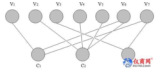 LDPC碼是一種具有稀疏校驗(yàn)矩陣的線性分組碼,它的特征完全由其奇偶校驗(yàn)矩陣決定。相對(duì)于行、列的長(zhǎng)度,校驗(yàn)矩陣每行、列中非零元素的數(shù)目(又稱(chēng)行重、列重)非常小。若校驗(yàn)矩陣H的行重、列重保持不變(或保持均勻),則稱(chēng)該LDPC碼為規(guī)則LDPC碼,反之若行重、列重變化較大,則稱(chēng)其為非規(guī)則LDPC碼。研究表明正確設(shè)計(jì)的非規(guī)則LDPC碼性能要優(yōu)于規(guī)則LDPC碼性能。