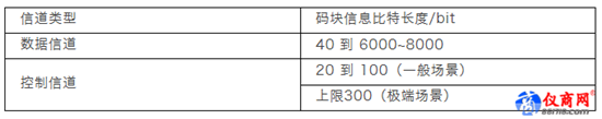 數(shù)據(jù)信道和控制信道碼塊信息比特長(zhǎng)度范圍