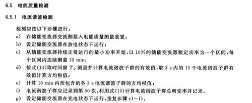 “GB_T34133-2017儲能逆變器測試標(biāo)準(zhǔn)”詳細(xì)規(guī)定了充放電檢測、并離網(wǎng)切換檢測、效率檢測、過載能力檢測、電能質(zhì)量檢測、功率控制檢測、電網(wǎng)適應(yīng)性檢測、低電壓穿越能力檢測、防孤島保護(hù)性能檢測、環(huán)境及安規(guī)檢測、保護(hù)功能檢測、電磁兼容性檢測等測試標(biāo)準(zhǔn)。熟悉該行業(yè)的工程師會發(fā)現(xiàn),大部分測試標(biāo)準(zhǔn)和光伏逆變器的測試標(biāo)準(zhǔn)一致,但是在6.5章節(jié)的“電能質(zhì)量檢測”中增加了專屬儲能逆變器的測試要求。