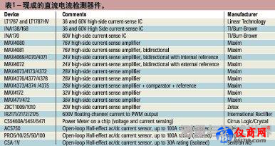 表1所列器件絕非完整無缺,許多制造商會定期在其產(chǎn)品系列中增加電流檢測器件,并且以甚至更快的速度淘汰一些產(chǎn)品。