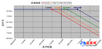 由存儲關(guān)系式知道:提高示波器的存儲深度可以間接提高示波器的采樣率,當要測量較長時間的波形時,由于存儲深度是固定的,所以只能降低采樣率來達到,但這樣勢必造成波形質(zhì)量的下降;如果增大存儲深度,則可以以更高的采樣率來測量,以獲取不失真的波形。