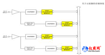 存儲深度表現(xiàn)在物理介質(zhì)上其實是某種存儲器的容量,存儲器容量的大小也就是存儲深度。示波器采集的樣點存入到存儲器里面,當存儲器保存滿了,老的采樣點會自動溢出,示波器不斷采樣得到的新的采樣點又會填充進來,就這樣周而復(fù)始,直到示波器被觸發(fā)信號“叫停”,每“叫?!币淮?,示波器就將存儲器中保存的這些采樣點“搬移”到示波器的屏幕上進行顯示,這兩次“搬移”之間等待的時間被稱為“死區(qū)時間”。有個形象的比喻,存儲器就像一個“水缸”,“水缸”的容量就是“存儲深度“,如果使用一個“水龍頭”以恒定的速度對水缸注水,水龍頭的水流速就是“采樣率”,當水缸已經(jīng)被注滿水后,水龍頭仍然在對水缸注水,這時候水缸里的水有一部分就會溢出來,但水缸的總體容量是保持不變的。