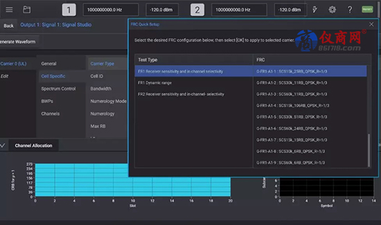 圖2:PathWave 5G NR 信號生成軟件的嵌入式用戶界面中的 5G NR FRC 配置