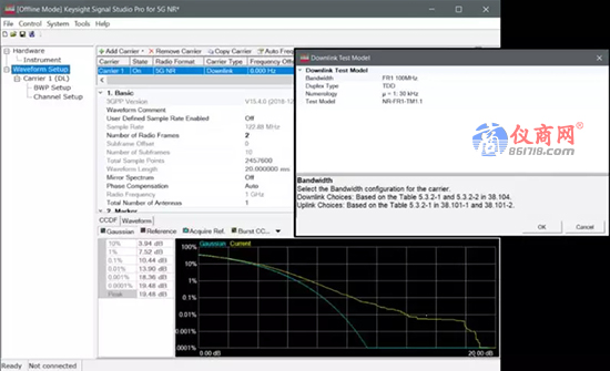 復雜的調(diào)制信號會產(chǎn)生更高的峰均功率比(PAPR),這可能導致被測器件(如放大器和混頻器)的非線性失真更高。測試工程師需要對生成的5GNR信號的功率電平進行統(tǒng)計分析。功率互補累積分布函數(shù)(CCDF)曲線能夠表征信號峰值超過平均功率電平的概率,并提供峰均功率比(PAPR)等關鍵信息。CCDF 幫助工程師了解給定信號在元件中產(chǎn)生非線性的概率,以及可能需要應用多少補償才能避免削弱信號峰值。使用信號發(fā)生器仿真數(shù)字調(diào)制信號時,要保證信號發(fā)生器不會使輸出信號飽和。