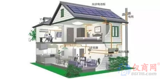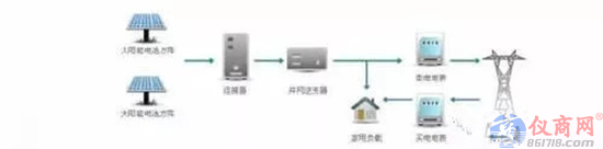 雙向電表主要針對分布式光伏發(fā)電站需要雙向計量的用戶,由于光伏電站發(fā)出的電有富余時,輸送給電網(wǎng)的電能需要準確計量。此外,在光伏發(fā)電不能滿足用戶需求時使用電網(wǎng)的電能也需要準確計量。而普通的單塊單向電表不能滿足這一要求,所以需要使用具有雙向電表計量功能的智能電表,實現(xiàn)電能的雙向計量。雙向電表的應用如下圖所示: