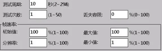 3.根據(jù)所選擇的測(cè)試項(xiàng),依次進(jìn)行各項(xiàng)測(cè)試參數(shù)(具體值可參閱RFC2544標(biāo)準(zhǔn)文檔)設(shè)定,包括測(cè)試周期、測(cè)試次數(shù)、幀速率等參數(shù)。下圖為吞吐量設(shè)置頁(yè)面。
