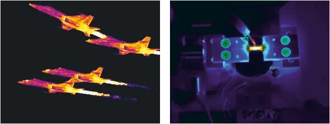 FLIR制冷型銻化銦熱像儀捕獲的“黃蜂”戰(zhàn)斗機的定格圖像,一個傳統(tǒng)熱電偶的熱圖像