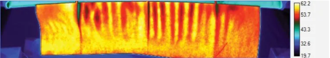 為了精確測量葉片表面與加熱線圈的溫度,注意制冷型熱像儀的快速積分時間如何獲得葉片的定格畫面。與之相反的是,因葉片轉速過快,非制冷型紅外熱像儀無法記錄葉片表面與加熱線圈的溫度。而且線圈被旋轉葉片所遮擋,所測的溫度將會偏低。