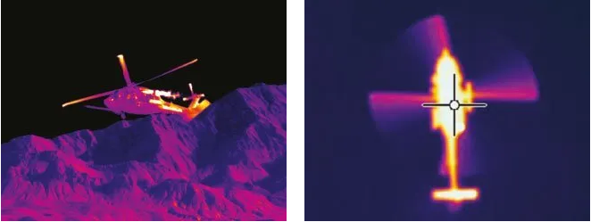 為了進一步說明問題,來看最后一例:測量直升機螺旋槳的熱效應。螺旋槳與空氣之間產生的摩擦會沿著螺旋槳形成一定的熱梯度,越靠近葉片尖端,溫度越高。使用非制冷微測熱輻射計熱像儀,無法有效的定格目標,不能準確地描述和測量真實的溫度。