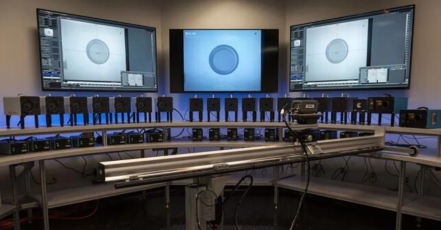 將黑體參考源布置成一個(gè)半圓,設(shè)定不同的已知溫度,然后將熱像儀(與機(jī)械臂相連)依次指向每個(gè)參考源。通過標(biāo)定軟件獲取每個(gè)溫度下的信號(hào)值,并將每對(duì)信號(hào)值和溫度值繪制成曲線,曲線方程基于物理模型。然后將這些數(shù)據(jù)加載到熱像儀中,對(duì)其進(jìn)行標(biāo)定,以確保其符合精度規(guī)范。