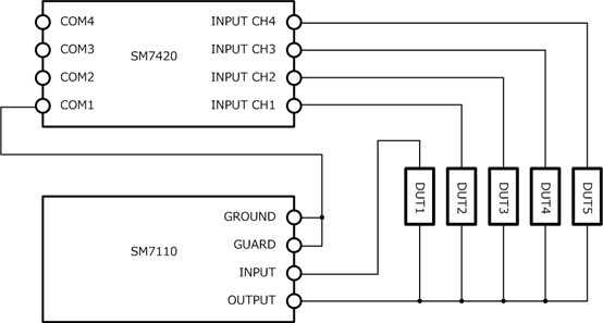SM7420因為沒有電源,所以需要另外準備電源。而把SM7110 作為電源去使用,就能作為一個5ch 的超絕緣計去使用。