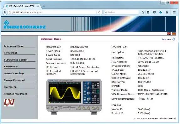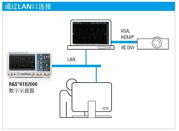 RTB2000數(shù)字示波器便于您通過(guò)LAN或互聯(lián)網(wǎng)與任何計(jì)算機(jī)/投影儀共享示波器的顯示內(nèi)容。該示波器配有一個(gè)RJ-45以太網(wǎng)口以及一個(gè)內(nèi)置WEB服務(wù)器(標(biāo)配)。將示波器直接連接到個(gè)人電腦、通過(guò)LAN口或通過(guò)互聯(lián)網(wǎng),即可顯示屏幕。