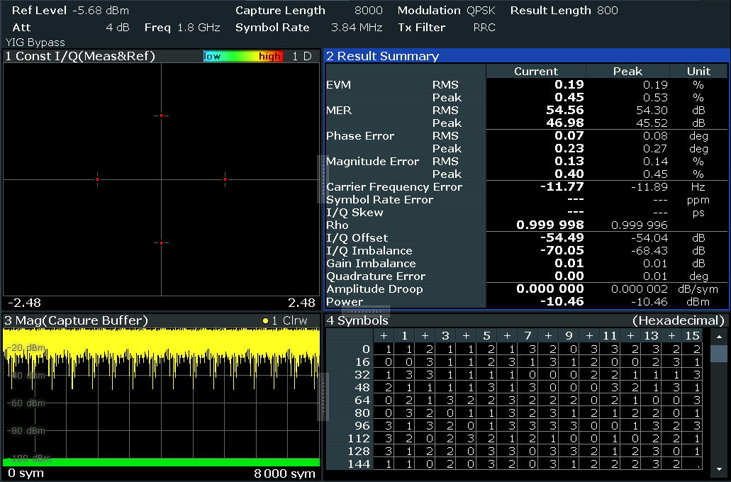 數(shù)字調(diào)制信號(hào)自身的信噪比分析,是對(duì)調(diào)制信號(hào)本身的信號(hào)功率和帶內(nèi)噪聲功率比值的直接測(cè)量分析。