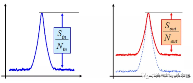 噪聲系數(shù)描述被測(cè)件DUT內(nèi)部噪聲程度,對(duì)信噪比的惡化程度,即輸入信噪比和輸出信噪比的比值: