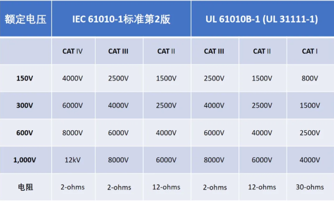 根據(jù)IEC61010-1:2001測量、控制和實驗室用設(shè)備安全通用要求,一般把電氣工作人員工作的區(qū)域(或電子電氣測量儀器的使用場所)分為四個類別,分別為 CATⅠ、CAT Ⅱ、CAT Ⅲ和CAT Ⅳ, 它嚴(yán)格規(guī)定了工作人員在不同類別的電氣環(huán)境中可能遇到的電氣設(shè)備類型,以及在這樣的區(qū)域中工作所使用的電子電氣測量儀器使用場所的安全規(guī)定,它描述了測量儀器在所測量的電路中可執(zhí)行的測量,劃定了測量儀器所屬的最高的“安全區(qū)域”。