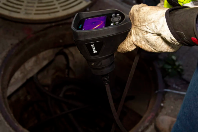 以 FLIR VS290-32紅外內(nèi)窺鏡套件為例,它主要設(shè)計用于檢查難以到達的地下公用設(shè)施等地方。該設(shè)備提供熱成像、可見光成像或兩者結(jié)合(MSX模式)的圖像。該設(shè)備具有CAT IV 600V的額定值。因此,只要瞬態(tài)或脈沖電壓不會超過8000V,它就是檢查公用電力設(shè)備是否存在潛在故障(例如地下公用設(shè)施金庫)的理想選擇。
