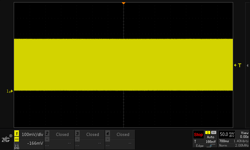 小存儲示波器采樣率已經(jīng)下降至2M Sa/s,波形完全失真。