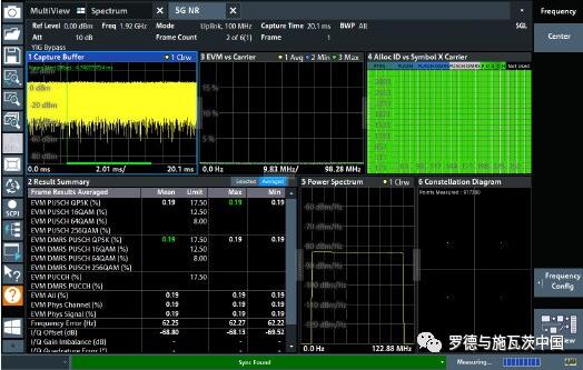 對(duì)5G NR信號(hào)進(jìn)行信號(hào)分析。測(cè)量應(yīng)用將顯示EVM、功率譜和星座圖等關(guān)鍵參數(shù)。