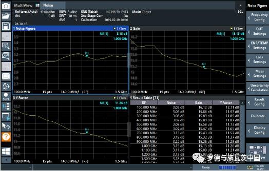 使用信號(hào)與頻譜分析儀結(jié)合專門的測(cè)量應(yīng)用對(duì)低噪聲放大器進(jìn)行噪聲系數(shù)和增益測(cè)量。由于消除了分析儀的固有噪聲,使用Y因子方法可以實(shí)現(xiàn)幾乎低至熱噪聲本底的非常精確的測(cè)量。