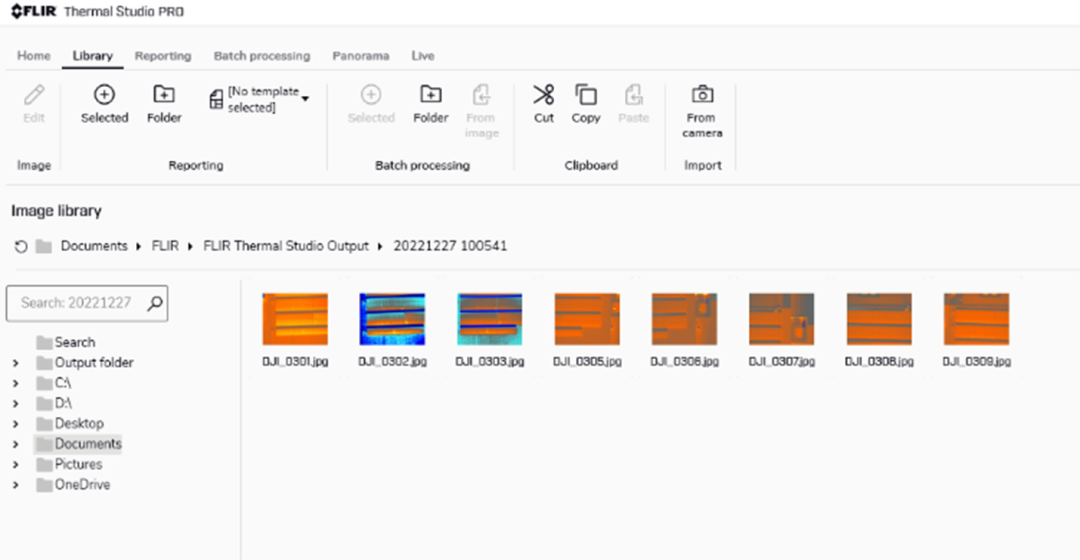 案頭工作時(shí)間的長(zhǎng)短通常涉及處理電子表格或?qū)嵯駡D與其他文件進(jìn)行比較。該過程繁瑣且緩慢,而且容易出錯(cuò)。有了FLIR Thermal Studio的批處理功能,報(bào)告部分的流程就變得更簡(jiǎn)潔、更流暢、更具一致性。比如使用無人機(jī)載熱像儀快速檢測(cè)廣闊的區(qū)域并在此過程中捕獲許多圖像。