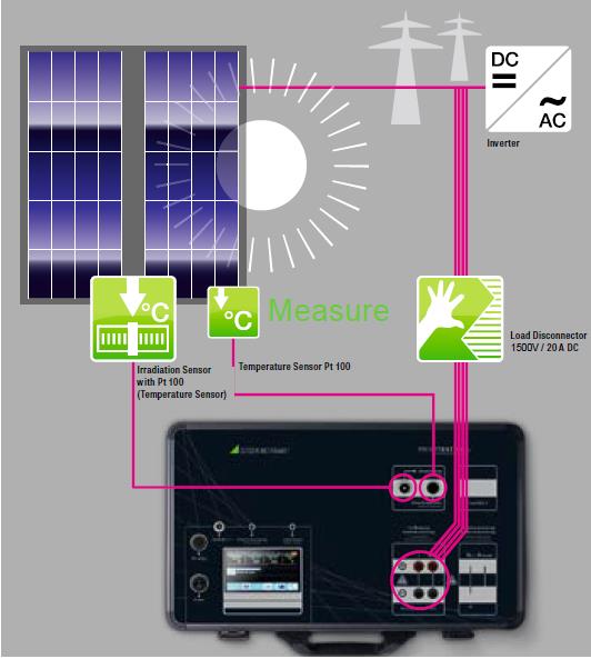 光伏組件現(xiàn)場測試時的輻照度、溫度等環(huán)境參數(shù)時刻在變化,需要能將現(xiàn)場實測峰值功率等參數(shù)轉(zhuǎn)換為標準測試條件(STC)下的參數(shù),與光伏組件額定參數(shù)對比才有意義。因此,IV曲線測試儀不僅需要能夠準確測量現(xiàn)場的峰值功率等參數(shù),還需要能準確有效轉(zhuǎn)換為STC下的參數(shù),不同條件下測試同一組件/組串得到一致的STC參數(shù)才是最重要指標!