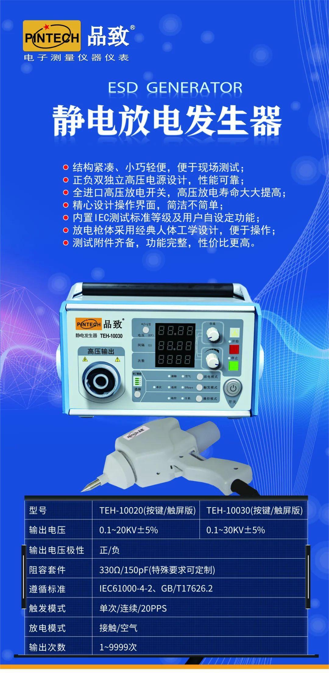 我司研制的靜電發(fā)生器,匹配的標準阻容參數(shù)是150pF/330Ω,該阻容參數(shù)符合人體放電模型,滿足IEC 61000-4-2標準的試驗要求。其他的阻容參數(shù)也可根據(jù)需要滿足的試驗標準里的阻容參數(shù)來定制。