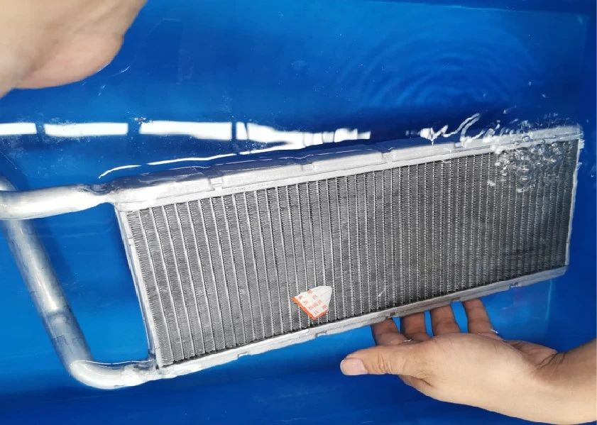 這種測(cè)試方法對(duì)于小尺寸的冷凝器還比較方便,但對(duì)于大尺寸的冷凝器就相當(dāng)困難,同時(shí),遇水后冷凝器還需干燥處理,十分耗用時(shí)間。