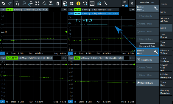 圖三 基于矢量網(wǎng)絡(luò)分析儀ZNA的噪聲系數(shù)測試結(jié)果顯示