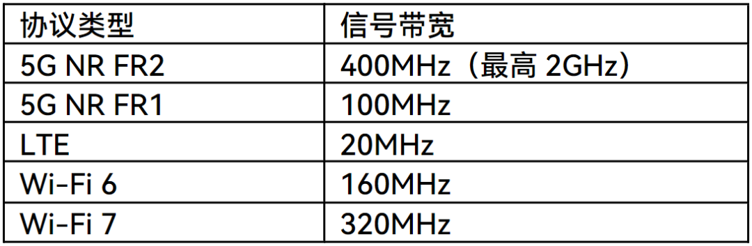 表3不同協(xié)議類型信號(hào)帶寬對(duì)應(yīng)表