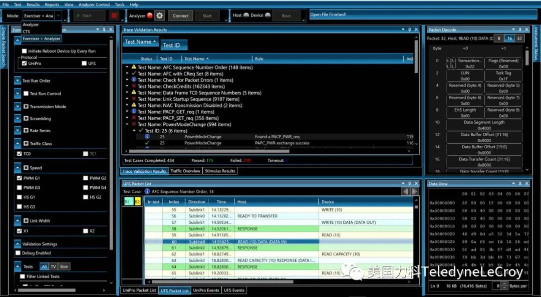 通過使用Eclipse M52先進(jìn)的UniPro M系列協(xié)議軟件套件,Eclipse M52可以自動(dòng)識別和評估數(shù)百萬個(gè)數(shù)據(jù)包、事務(wù)和完整的協(xié)議序列,驗(yàn)證是否符合MIPI規(guī)范,并提供余量、極端情況和自動(dòng)壓力測試??梢远啻巫詣?dòng)分析電源模式更改和鏈路啟動(dòng)序列事件等復(fù)雜事務(wù),從而發(fā)現(xiàn)即使是專業(yè)工程師也可能遺漏的問題。