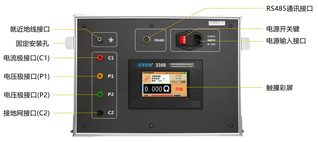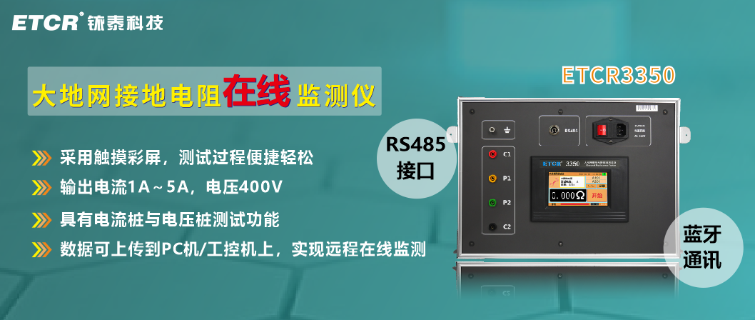 ETCR3350大型地網(wǎng)接地電阻在線監(jiān)測(cè)儀用于變電站地網(wǎng)、發(fā)電廠、微波站、通訊基站等大型地網(wǎng)接地參數(shù)的在線監(jiān)測(cè),儀器功能強(qiáng)大,可測(cè)試工頻接地阻抗、接地導(dǎo)通電阻、土壤電阻率、跨步電壓、接觸電壓、電位梯度等工頻特性參數(shù)。儀表具有獨(dú)特的接地樁及連接線診斷功能和自檢功能,確保測(cè)試結(jié)果的準(zhǔn)確。儀器采用觸摸彩屏操作特別方便簡(jiǎn)捷,點(diǎn)擊“幫助”鍵操作提示一目了然,儀器采用了新型變頻交流電源及微機(jī)處理控制和信號(hào)處理等措施,比較有效地解決了測(cè)試過(guò)程中的抗干擾問(wèn)題,簡(jiǎn)化了試驗(yàn)操作過(guò)程,提高了測(cè)試結(jié)果的精度和準(zhǔn)確性,大大降低了試驗(yàn)人員的勞動(dòng)強(qiáng)度和試驗(yàn)成本。儀器采用變頻抗干擾技術(shù),配合400V/5A大功率輸出。