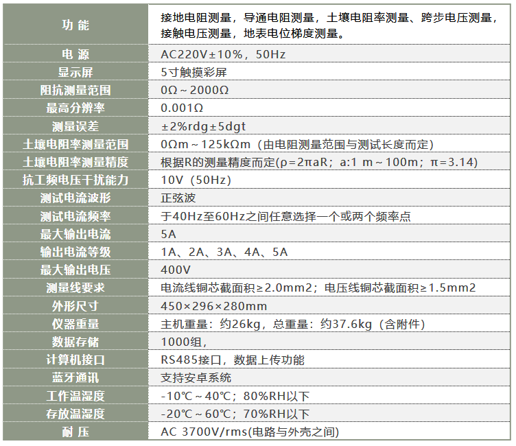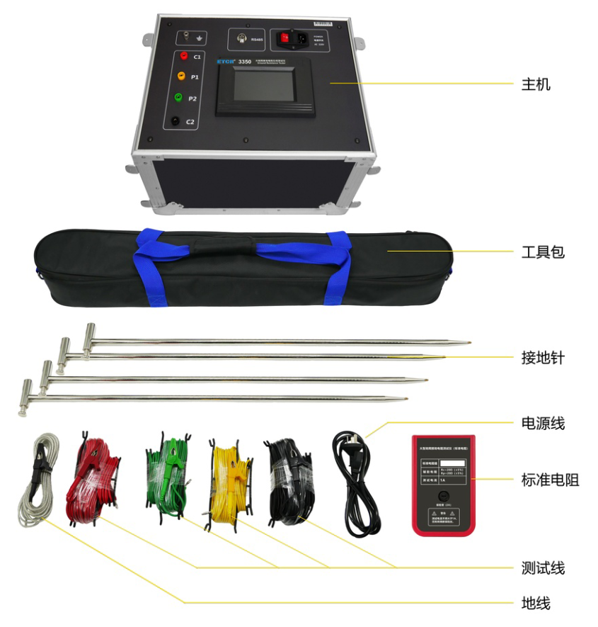 ·可測(cè)量大型地網(wǎng)的接地電阻,接地導(dǎo)通、土壤電阻率,跨步電壓,接觸電壓,地表電位梯度等。