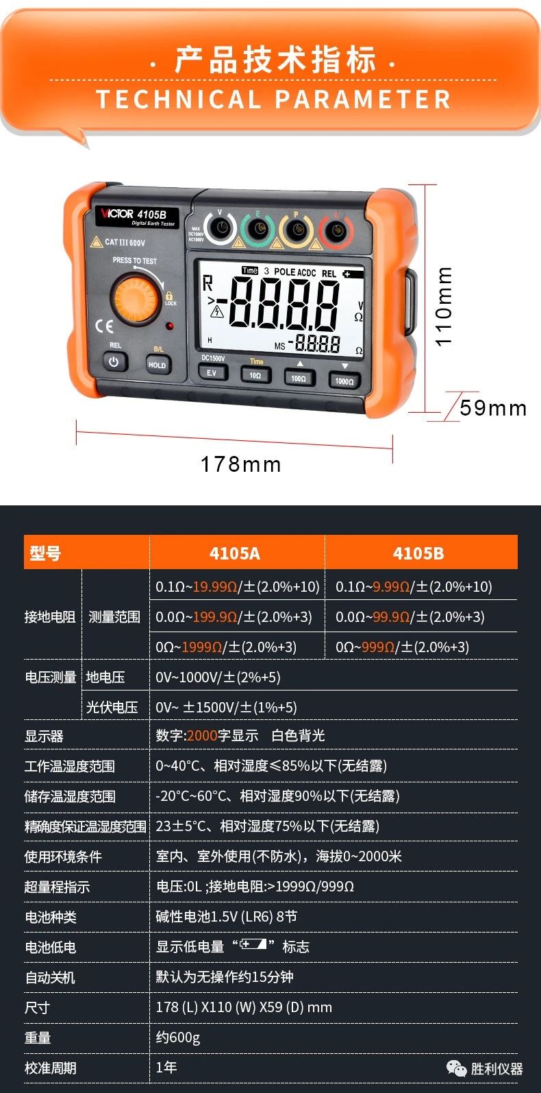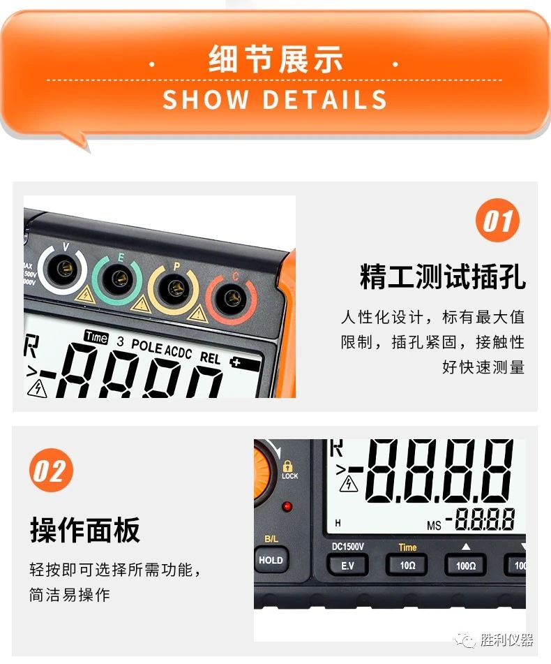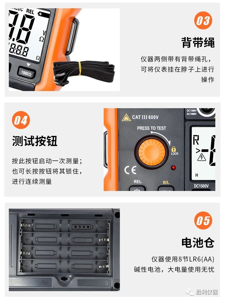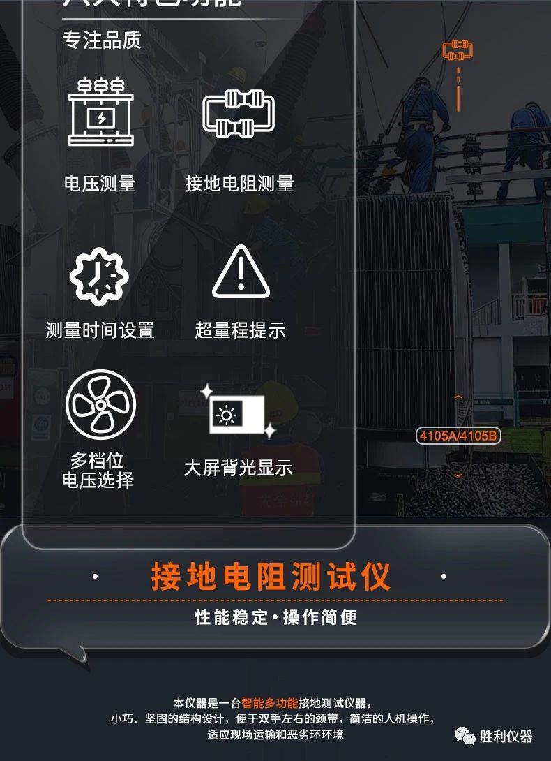 勝利儀器產(chǎn)品推薦:接地電阻測試儀VCTOR 4105A/4105B,具備20000Ω接地電阻測試、過載保護功能、測量時間設(shè)置等特點。以下是詳細介紹: