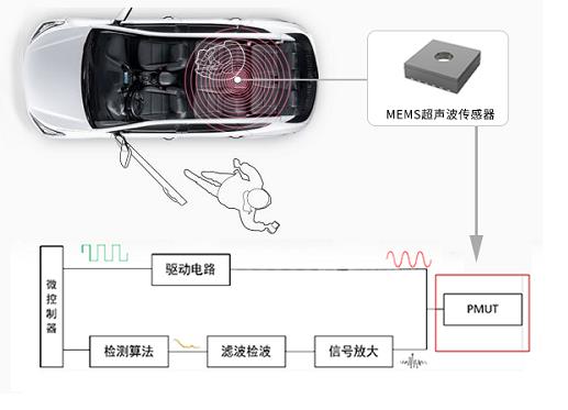 對(duì)于CPD功能場(chǎng)景,奧迪威推出了高度集成化、智能化、小型化的MEMS超聲波傳感器,單個(gè)芯片兼具超聲波發(fā)射與接收功能,是基于高性能壓電功能薄膜與硅基MEMS異質(zhì)集成的新一代超聲波傳感器。MEMS超聲波CPD方案通過(guò)動(dòng)態(tài)檢測(cè)算法與模塊集成,實(shí)現(xiàn)生命監(jiān)測(cè)功能;模塊為數(shù)字信號(hào),支持LIN、串口等多種通信協(xié)議。