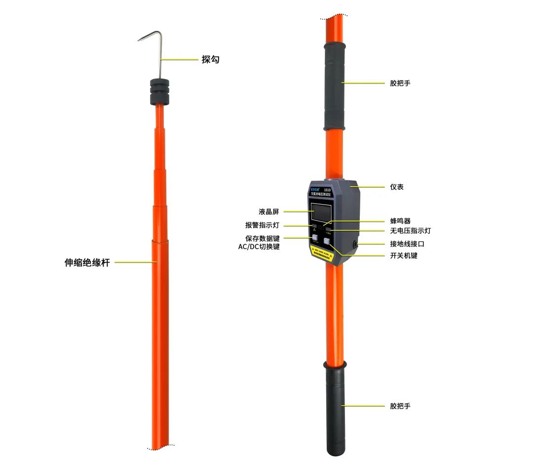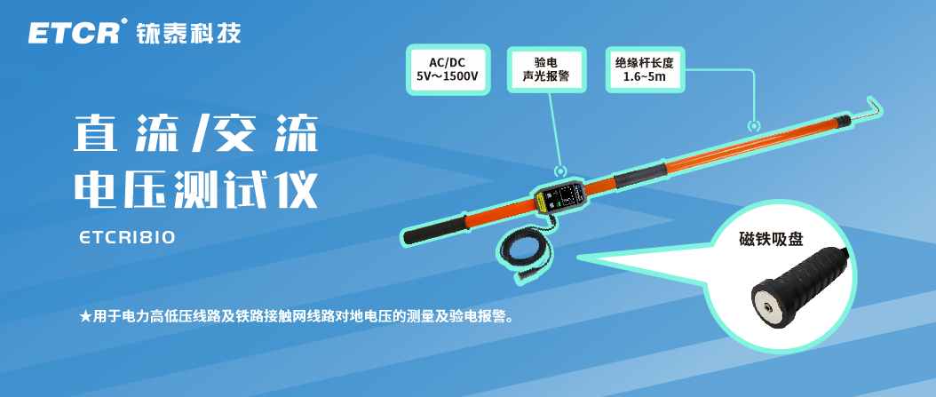 ETCR1810交直流電壓測試儀用于電力高低壓線路及鐵路接觸網(wǎng)線路對地電壓的測量及驗(yàn)電報(bào)警,電壓測量范圍可達(dá)1500V。儀表采用伸縮桿結(jié)構(gòu),收縮長度1600mm,展開長度5000mm。輸電線路停電維護(hù)時(shí),由于電容效應(yīng),鄰近運(yùn)行線路會(huì)產(chǎn)生感應(yīng)電壓,嚴(yán)重威脅檢修測試儀器及運(yùn)維作業(yè)人員的安全,本儀表可快速測量輸電線路運(yùn)行時(shí)的電壓或維護(hù)時(shí)的感應(yīng)電壓,保護(hù)設(shè)備及作業(yè)人員的安全。