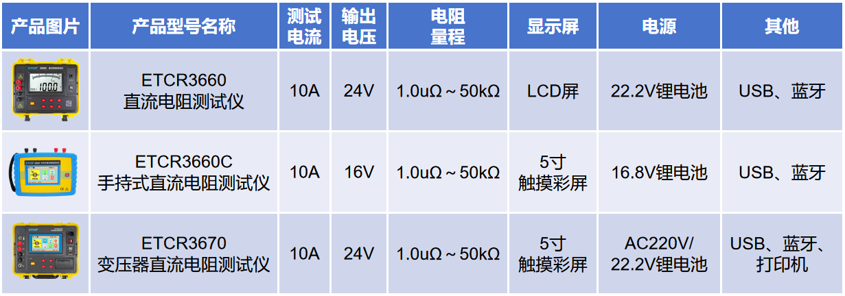 ETCR3660直流電阻測(cè)試儀用于變壓器繞組電阻測(cè)量;導(dǎo)體直流電阻測(cè)量;電纜線(xiàn)長(zhǎng)度測(cè)算等。