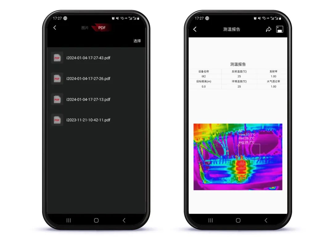 APP支持實(shí)時預(yù)覽,在線監(jiān)測目標(biāo)區(qū)域溫度分布和變化。還可抓拍、錄像,便于遠(yuǎn)距離監(jiān)控和故障追蹤溯源。支持一鍵生成報(bào)告,輕松分享至微信等第三方應(yīng)用平臺。