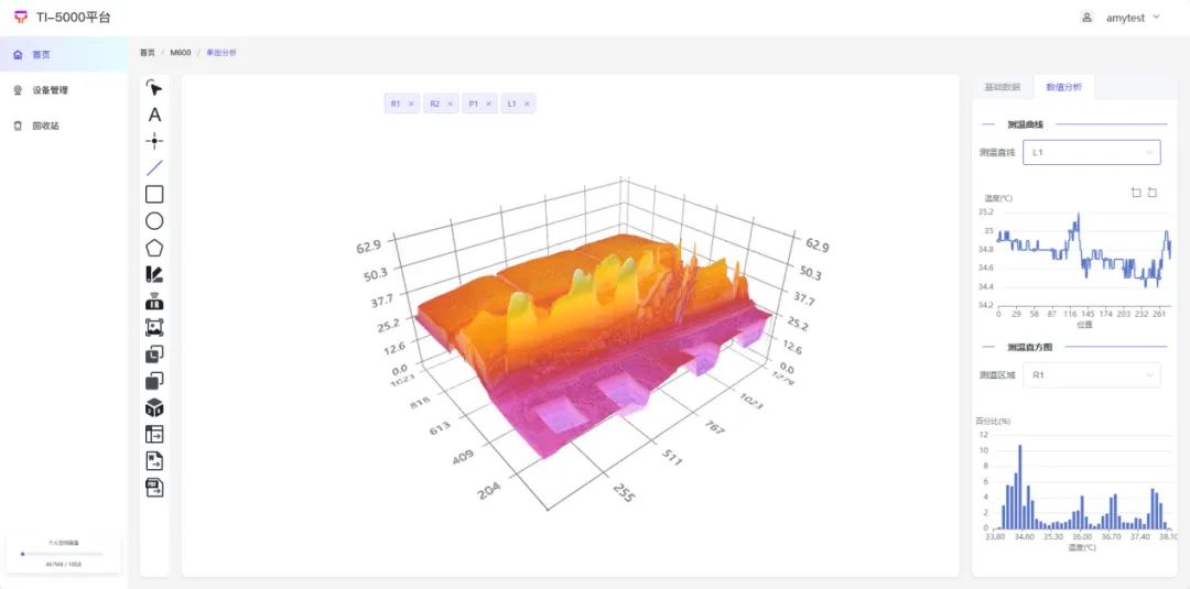 提供交互式3D溫度場展示功能,用戶可以360度無死角查看溫度場分布情況。無論是局部熱點(diǎn)追蹤還是大面積溫度分布研究,TI-5000測溫云平臺都能輕松應(yīng)對,在線執(zhí)行多維度溫度監(jiān)測與深度分析。