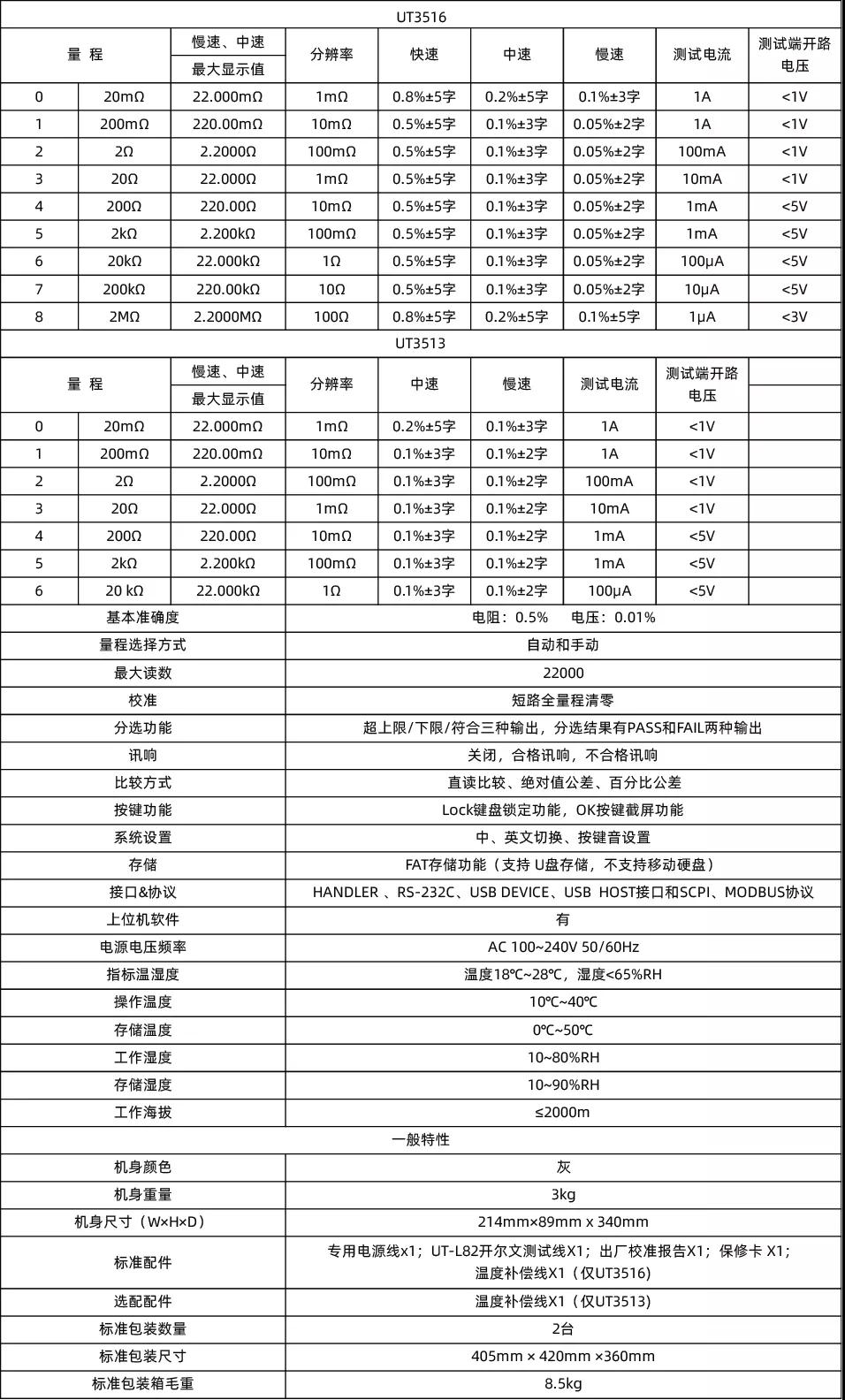 ◆UT3516測(cè)量范圍:1μΩ-2MΩ