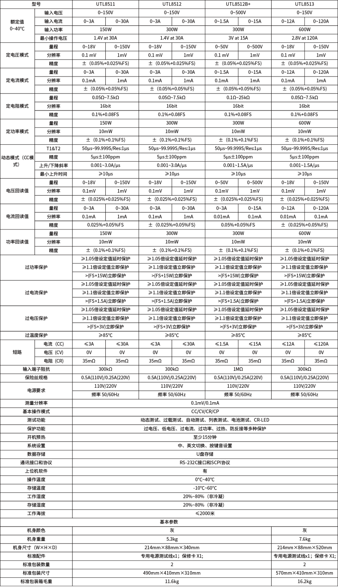 UTL8500系列可編程直流電子負(fù)載配有4.3英寸液晶顯示屏,功率范圍廣泛,分辨率可達(dá)0.1mV/0.1mA,具有動(dòng)態(tài)測(cè)試、過(guò)載測(cè)試、自動(dòng)測(cè)試、列表測(cè)試、電池測(cè)試、CR-LED測(cè)試等多種測(cè)試功能與模式,同時(shí)標(biāo)配RS-232C通訊接口,并可根據(jù)設(shè)計(jì)和測(cè)試需求選配其他通訊接口,提供多用途解決方案,靈活滿(mǎn)足各種現(xiàn)場(chǎng)測(cè)試條件,實(shí)現(xiàn)與自動(dòng)化生產(chǎn)線、自動(dòng)測(cè)試系統(tǒng)無(wú)縫連接。