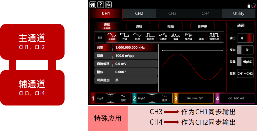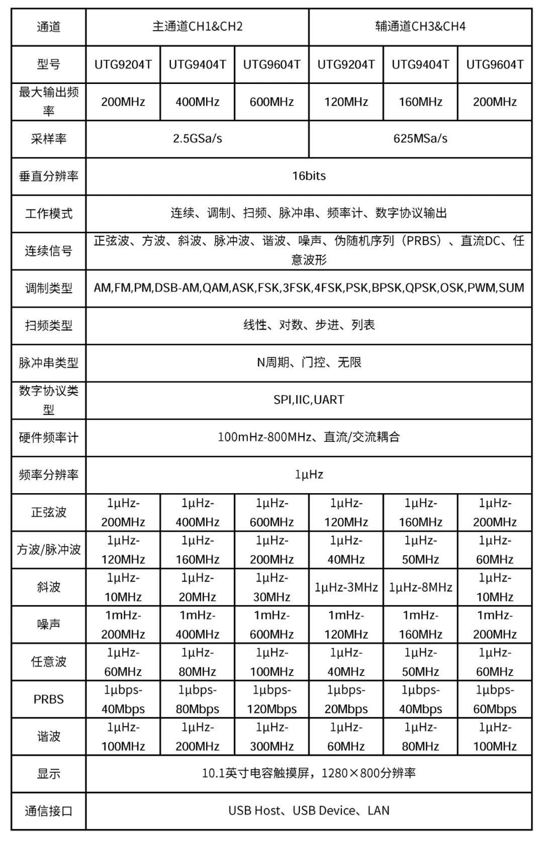 UTG9000T系列函數(shù)/任意波形發(fā)生器,使用DDS直接數(shù)字頻率合成技術(shù),可生成高精度、穩(wěn)定、純凈、低失真的信號(hào),還能提供高頻率且具有快速上升沿和下降沿的方波。是一款高性能、多功能的四通道函數(shù)/任意波形發(fā)生器。便捷的觸控操作界面、優(yōu)越的技術(shù)指標(biāo)及人性化的圖形顯示風(fēng)格,可幫助您更快的完成工作任務(wù),提高工作效率,是滿足您目前及未來(lái)測(cè)試需求的多用途設(shè)備。