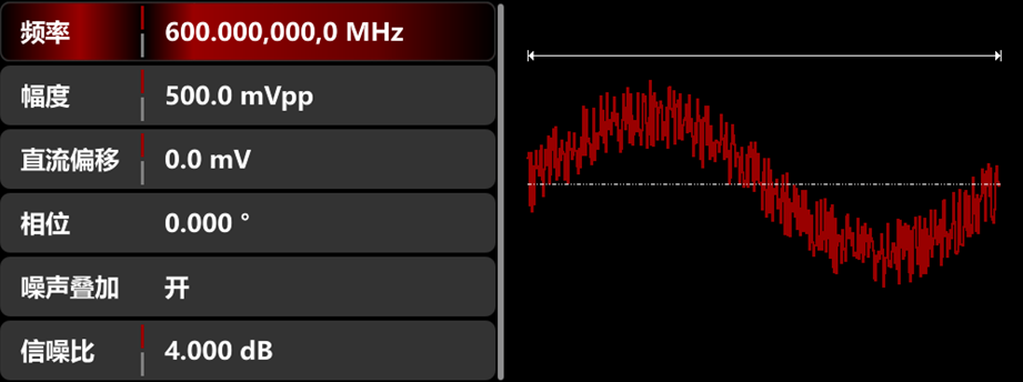 ● 可一鍵疊加噪聲,信噪比為信號(hào)中有效成分的功率與噪聲成分功率之比。