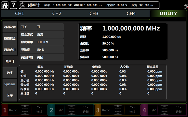 ● 硬件頻率計(jì):800MHz,交流/直流耦合