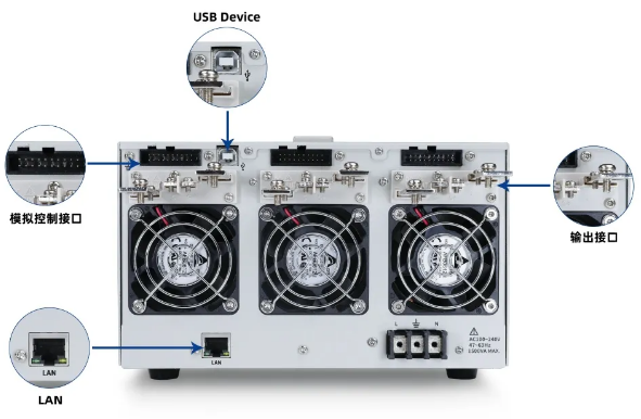 SPS5000X機(jī)架高度3U, 寬度具備1/2,1/3,1/6 機(jī)架尺寸,可快速裝配到機(jī)柜。并且在后面板保留了模擬輸入輸出控制接口,與傳統(tǒng)的測(cè)試系統(tǒng)兼容性良好。