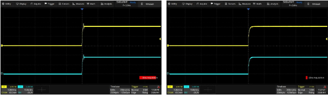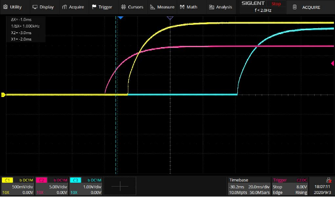 此外,SPS5000X的CC優(yōu)先模式有效限制了浪涌電流和過(guò)沖電壓的發(fā)生;CV優(yōu)先模式下,輸出電壓快速達(dá)到設(shè)置電壓值,在某些特殊應(yīng)用場(chǎng)合:比如LED測(cè)試,就會(huì)在電源輸出啟動(dòng)時(shí)候,當(dāng)電壓達(dá)到LED的正向?qū)妷篤f時(shí)出現(xiàn)浪涌電流和過(guò)沖電壓。