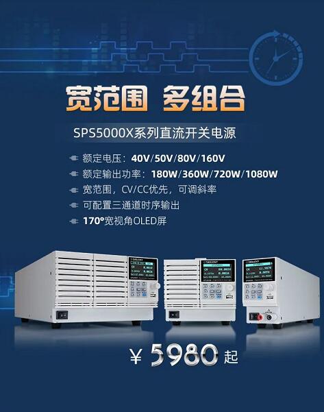 2021年2月26日,鼎陽(yáng)科技發(fā)布SPS5000X系列開(kāi)關(guān)電源新型號(hào)SPS5051X,其額定輸出電壓、電流、功率分別為50V/10A/180W,售價(jià)5980元,為具有特定需求的客戶(hù)提供了更具性?xún)r(jià)比的選擇。