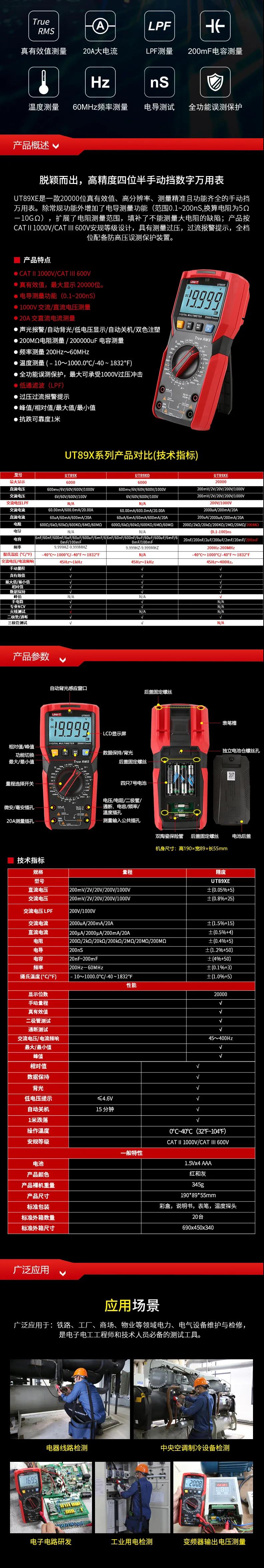 UT89XE數(shù)字萬用表是一款20000位真有效值、高分辨率、測(cè)量精準(zhǔn)且功能齊全的手動(dòng)擋萬用表。