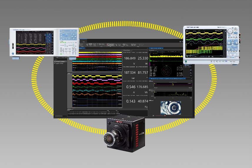 -IS8000使用WT5000功率分析儀、DL950示波記錄儀和高速攝像機(jī)進(jìn)行同步測量的圖像-